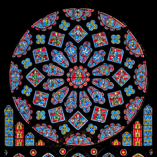 Previous Image Next Image 7_Chartres-Cathedral_RosetteNord_500_o Chartres Cathedral stain glass rosette. Views: 0